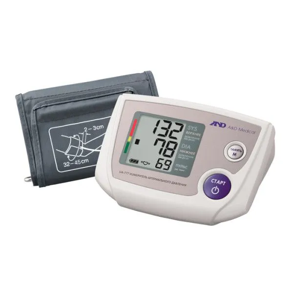 - Цифровой прибор для измерения артериального давления и частоты пульса (или тонометр) AND UA-777L с манжетой AND Cufbox-LA для рук с длиной окружности плеча 32 - 45 см. и сетевым адаптером AND TB-233C, предназначенный для применения в качестве индивидуального средства контроля артериального давления и частоты пульса и динамических наблюдений на этими параметрами в медицинских учреждениях, является одним из лидеров по продажам в сегменте "Измерители артериального давления" в аптечных сетях России. Главные преимущества тонометра AND UA-777L - это широкий набор пользовательских функций, который позволяет проводить точные и безболезненные измерения, и невысокая цена.