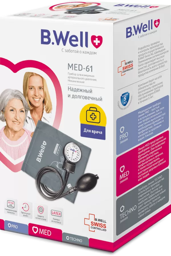 Механический тонометр MED-61 предназначен для профессионального использования. Этот прибор удобен для медицинских работников, которым необходима высокая точность и долговечность прибора.