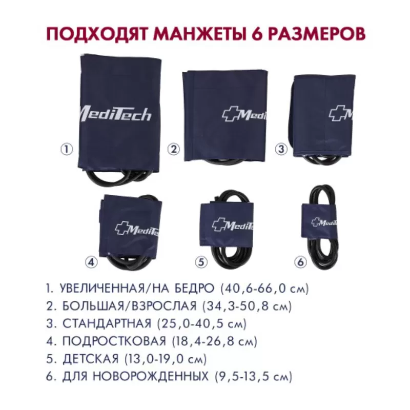- Возможность подключения 6 видов манжет разного размера для взрослых и детей.