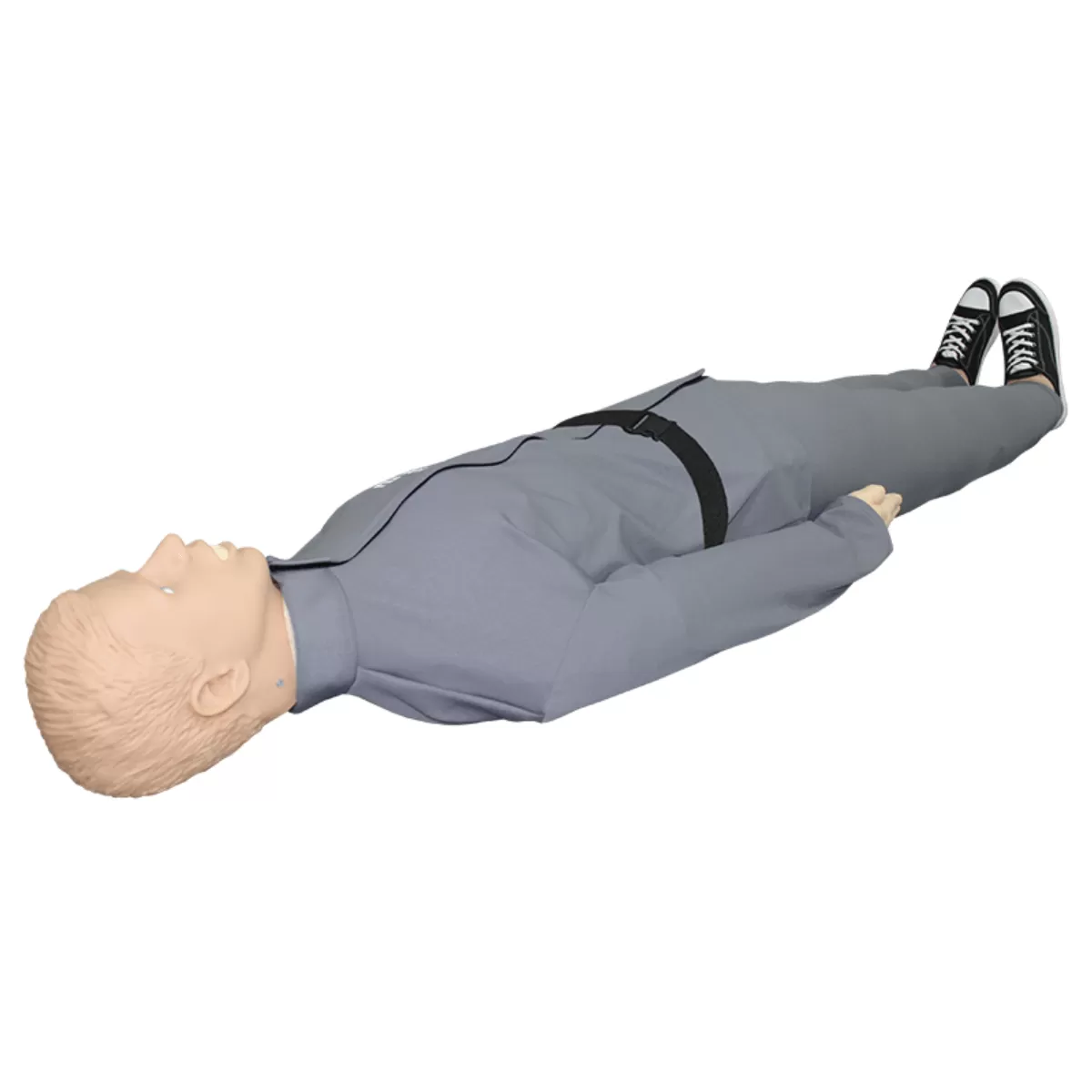 Тренажер для оказания первой помощи на месте происшествия. Приказ 804 Минпросвещения РФ.Тренажер-манекен имеет подвижное соединение тела с головой, имитирующее шейный отдел позвоночника. В конструкции полноростового манекена предусмотрены детали и узлы в виде анатомических ориентиров (грудная клетка, мечевидный отросток грудины, ключица, соски, реберные дуги, адамово яблоко) для корректного проведения реанимационных мероприятий.