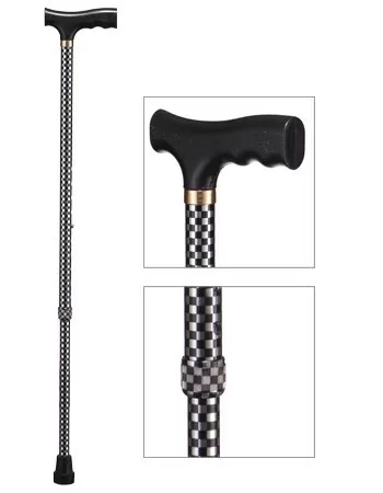 - Т-образная рукоятка со специальными выемками под пальцы позволяет лучше удержать трость в руке.