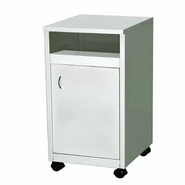 - Имеет верхнюю открытую полку и нижнее отделение с дверцей и полкой