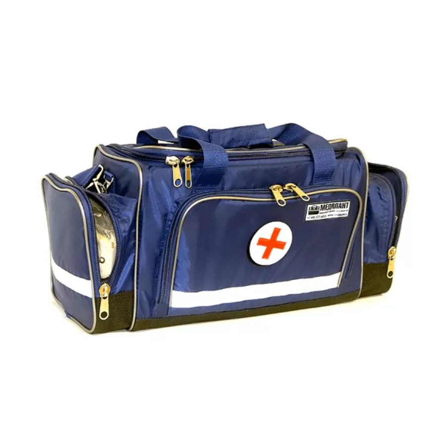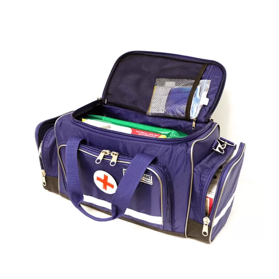 Укладка представляет собой комплект материалов, инструментов и изделий медицинского назначения, позволяющий оказывать медицинскую помощи при травмах несовершеннолетним в образовательных учреждениях и в иных учреждениях, проводящих обучение несовершеннолетних. Укладка выпускается в сумке универсальной СМУ-02.Сумка универсальная СМУ-02. Изготовлена из синтетической водоотталкивающей ткани ПВХ 420Д, дно сумки изготовлено из непромокаемого тентового материала, что обеспечивает хорошую влагоизоляцию сумки. Для защиты вложений от механических повреждений, в стенках сумки находятся моющиеся съёмные каркасные элементы из полирекса НПЭ. Для размещения вложений сумка имеет 3 кармана, основной отсек и отсек для хранения документов. На внешней части сумки расположен держатель для информационной таблички (для обозначения номера бригады и т.п.) и эмблема красного креста. По периметру корпуса сумки расположена светоотражающая полоса для обеспечения безопасности работы в темное время суток. Для удобства переноски сумка снабжена двумя ручками (для ношения одной рукой) и плечевым ремнём, со специальной накладкой, которая предохраняет его от сминания.