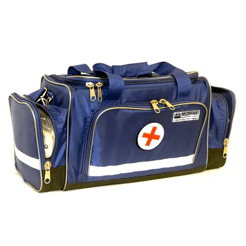На внешней части сумки расположен держатель для информационной таблички (для обозначения номера бригады и т.п.) и эмблема красного креста.