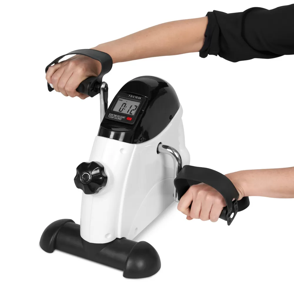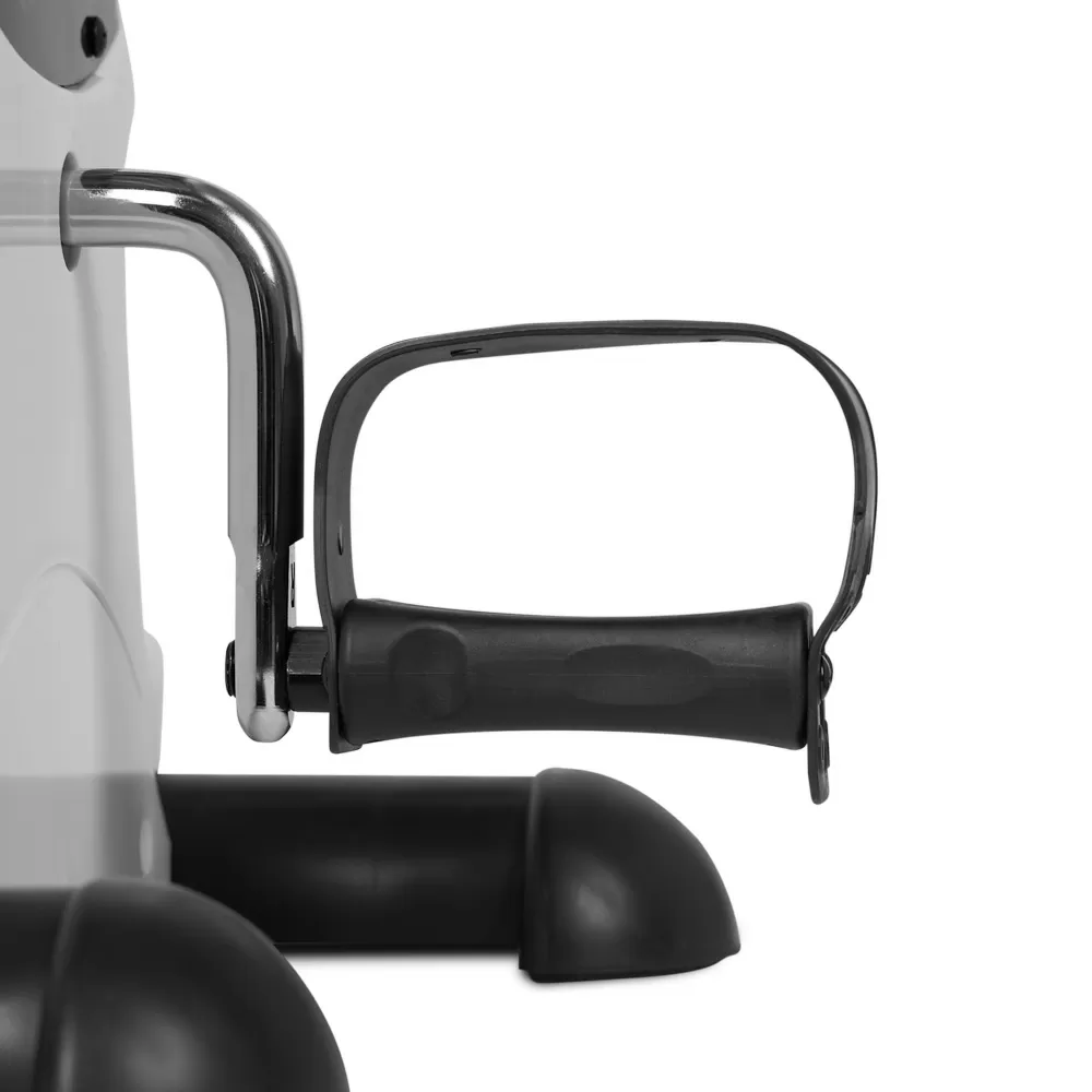 - Если пациенту сложно удерживать ноги на педалях, ему помогут прочные резиновые фиксаторы. Они не позволят ногам выскользнуть, и тренировка пройдет в правильном режиме.