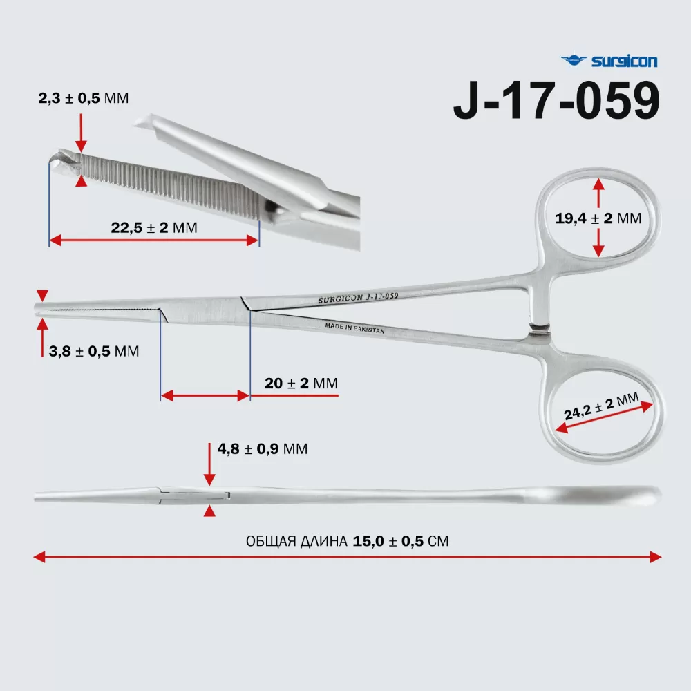 Ручной хирургический инструмент предназначен для временного атравматичного сжатия артерии для гемостаза (остановки или предотвращения кровотечения) во время процедуры. Имеет самофиксирующуюся конструкцию в форме ножниц с кольцевыми ручками и сделан из высококачественной нержавеющей стали; он может иметь вставки из различных материалов (например, из карбида). Функциональное назначение - для временного пережатия концов сосудов (прочной фиксации) перед наложением лигатур или электрокоагуляции;- Тип инструмента - зажимной