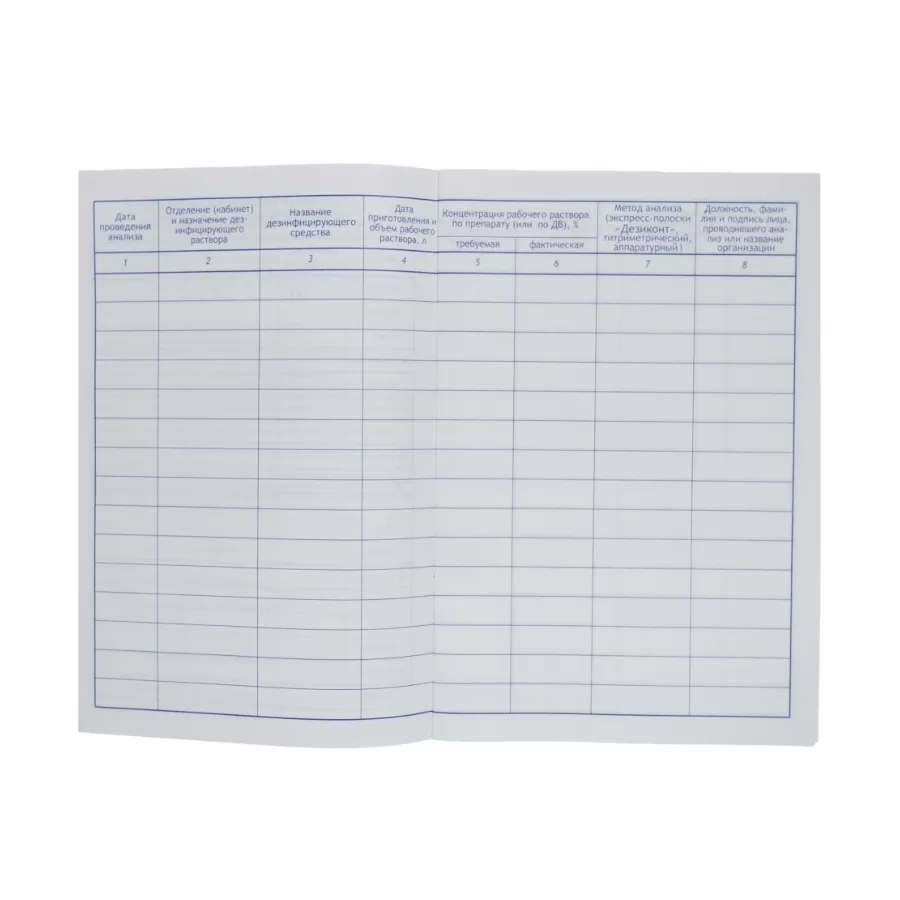 - Журнал контроля концентраций рабочих растворов дезинфицирующих и стерилизующих средств.
